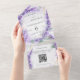 Invitación Todo En Uno Boda de código QR moderno de lavanda dura Foliage
