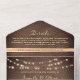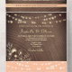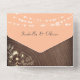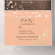 Elegante, boho, moderno, fuzz de melocotón de moda y rústico boda de madera todo en uno con falso encaje floral de oro, luces de cuerda y foto personalizado de la pareja en la parte de atrás. Añade tu foto, detalles del boda y rsvp.