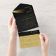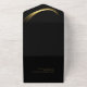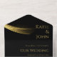Anuncie su amor con estilo con nuestra invitación a la Boda de la Elegancia Dorada. Un moderno y glamuroso Black and Gold con un swoosh dorado marca el tono de tu día especial. Explore nuestra colección temática de bodas y capture su historia de amor única en cada detalle. Admire la elegancia moderna con esta exquisita invitación.