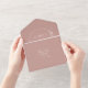 El elegante diseño de una invitación a la boda presenta una tipografía blanca sobre un suave fondo de terracota, rodeada por una delicada corona de flores silvestres de forma ovalada. La corona está hecha a partir de una variedad de flores silvestres delgadas, creando un ambiente suave y romántico. La tipografía es elegante y sofisticada, con una fuente serif clásica que añade el encanto general de la invitación.