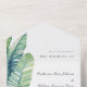 Invitación Todo En Uno Boda de follaje exótico de hojas silvestres y trop