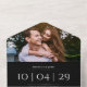 Una elegante invitación de boda minimalista en blanco y negro que incluye tu foto, fecha especial y detalles de la boda en tipografía clásica y elegante. La invitación incluye una tarjeta RSVP perforada con el código QR de tu sitio web de boda y detalles. Diseñado por Thisisnotme©