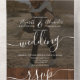 Una rústica madera marrón marrón en una sola invitación de boda caligrafía con foto con rsvp, alojamiento, detalles y más información. Con un guión moderno y de moda, añada sus iniciales.