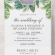 Aprovecha tu estancia con esta elegante invitación a una boda tropical con una tipografía moderna y unas hojas de acuarela rústicas con una postal RSVP desmontable. Simplemente agregue los detalles de su evento en esta plantilla fácil de usar y adorne esta tarjeta con su foto favorita para convertirla en una invitación única.
