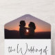 Personalizar todo el texto del cuerpo, color de fondo en el panel rsvp y color de la imagen "el boda de"; divertido tipo de letra manuscrita en elegante negro y blanco y retrovisor de fotos.