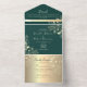 Invitación Todo En Uno Boda de Fotos Florales de Oro Esmeralda