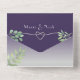Elegante, moderno, acuarela verde polvorienta boda todo en uno púrpura con un simple corazón de cuerda gris plateada y una imagen personalizado de la pareja en la parte de atrás. Añade tu foto, detalles del boda y rsvp.