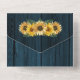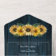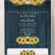 Invite a sus huéspedes a su próximo boda con una Rustic Blue Sunflower All in One Wedding Invite. Presenta un diseño acogedor con un fondo rústico de madera y un elegante ramo de girasoles. Personaliza con los nombres del novio y la novia junto con la fecha y el lugar del boda. También hay material de boda adicional disponible con este diseño.