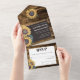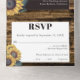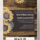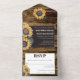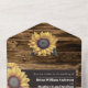 Invite a sus huéspedes a su próximo boda con un Rústico Girasol Todo en una Boda. Presenta un diseño acogedor con girasoles acuáticos y un fondo rústico de madera. Personaliza con los nombres del novio y la novia junto con la fecha y el lugar del boda. También hay material de boda adicional disponible con este diseño.