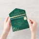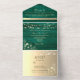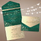 Celebre su amor en medio de un encanto rústico con nuestra elegante invitación a la boda todo en uno, perfecta para su boda de granero. Está construido con telas rústicas de madera en un rico verde esmeralda, y exuda el calor y la comodidad de una celebración campestre. Decorado con encajes florales vintage y lámparas de cuerdas doradas, el lugar es ideal para una noche encantadora bajo las estrellas. Personalizar tu invitación con una foto personal de la pareja feliz en la parte de atrás, añadiendo un toque de intimidad y nostalgia. Con detalles bodas y una sección RSVP, esta invitación invita a sus huéspedes a compartir la magia de su día especial, donde el encanto rústico se encuentra con la elegancia eterna. Por favor, tenga en cuenta que esta invitación "todo en uno" requiere un sobre separado para el envío de correo. Recomendamos emparejarlo con un sobre A9 estándar (5,75" x 8,75") para el mejor ajuste.