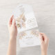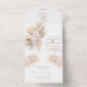 Invitación TODO EN UNO. Al incluir los detalles y la RSVP en la invitación de boda en lugar de en tarjetas separadas, es una buena opción. Diseño único y elegante con rosas rosadas de acuarela, orquídea blanca, hierba de pampas del desierto, hojas secas, sobre un fondo blanco. Utilice la herramienta Personalizar para agregar su información. Para artículos coincidentes, visite mi Colección floral de hierba de Pampas.