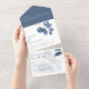 Invitación Todo En Uno Boda de Hojas Azules con Acuarela Moderna