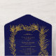 Invitación Todo En Uno Boda de invierno azul marino con marco de pino pur