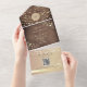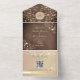 Elegante y eficiente, esta rústica invitación a la boda se caracteriza por luces de cuerda brillantes, textura cálida de madera, un monograma personalizado y un moderno código QR RSVP. Diseñado con acentos florales dorados y espacio para tu foto de compromiso, este patrón es ideal para bodas acogedores de otoño, celebraciones boho o recintos de granero. Todo lo que sus clientes necesitan en un diseño de diseño. Nota: Esta invitación "todo en uno" requiere un sobre separado para el correo. Recomendamos utilizar un sobre A9 estándar (5,75" x 8,75") para el mejor ajuste.