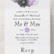 Invitación a una boda floral de color gris lila y canina de carbón vegetal diseñada para ser rápida y fácilmente adaptada a las necesidades específicas de tu evento.