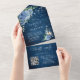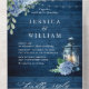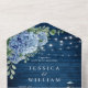 Invitación Todo En Uno Boda de madera azul Hydrangea Lantern código QR