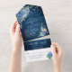 Invitación Todo En Uno Boda de madera de la Marina Azul Hydrangea Lantern