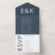 Invitación Todo En Uno Boda de Monograma Azul de la Marina Negrita Ultra