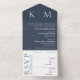 Invitación Todo En Uno Boda de Monograma Azul y Blanco-
