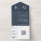 Invitación Todo En Uno Boda de Monograma Azul y Blanco-