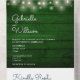 Todo en una invitación de boda con luces de cuerda de bonito, sus iniciales de monograma y elegante tipografía minimalista moderna sobre un fondo rústico de paneles de madera verde esmeralda. La invitación incluye una tarjeta RSVP perforada que puede ser dirigida individualmente o dejada en blanco para que pueda escribir a mano los detalles de la dirección de su invitado. Diseñado por Thisisnotme©