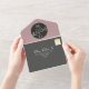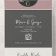 Único, minimalista, moderno, contemporáneo y simplista rosa polvoriento, invitación de boda todo en uno en blanco y negro con código QR, monograma con aves de pareja de amor dibujadas a mano, guión escrito a mano a la moda e imagen personalizado de la parte trasera. Añade tu foto, detalles del boda y rsvp.