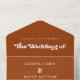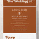 Un tema de moda retro: adopta este diseño tipográfico algo vintage y elegante para tu papelería boda, con un naranja quemado, terracota, azúcar marrón y color rosa melocotón. Personalizable completo de texto, colores y fondos. Todo en uno: económico y ecológico, este sello y la invitación incluyen una postal RSVP.