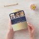 Esta invitación a la boda combina la elegancia moderna con la comodidad digital. Diseñado con un fondo azul marino profundo, detalles románticos del corazón de las cuerdas doradas y espacios de fotos reales, incluye un escandaloso código QR en el panel RSVP para respuestas en línea sin esfuerzo. Elegante y compacto, es perfecto para bodas contemporáneos que mezclan sofisticación clásica con funciones tecnológicas. Ideal para celebraciones formales, nocturnas o con acentos dorados. Por favor, tenga en cuenta que esta invitación "todo en uno" requiere un sobre separado para el envío de correo. Recomendamos emparejarlo con un sobre A9 estándar (5,75" x 8,75") para el mejor ajuste.