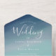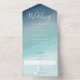 Una invitación a la boda todo en uno con un suave fondo de inspiración oceánica y letras blancas y azules. Esta invitación incluye una tarjeta RSVP desgarradora. Simplemente agregue su información, añada esta invitación a su carrito y disfrute de su hermoso boda. Ocean Beach Wedding All in One Invitation Holiday Design | ©Melissa Patton - Diseñador/Ilustrador