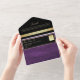 Elegante, moderna, lujosa, chic, invitación de boda minimalista en púrpura, dorado y negro todo en uno con foto personalizada de la pareja en la parte posterior.