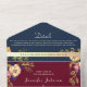 Disfrute de la belleza intemporal del romance rústico con nuestra elegante invitación rústica a bodas botánicas. Este magnífico diseño combina tonos azul marino y burdeos con delicadas flores silvestres rosas de color acuático, creando un ambiente encantador e inspirado en la naturaleza. Una foto personalizada de la pareja le da un toque de sentido, haciendo de esta invitación verdaderamente única. Perfecto para bodas rústicas, bohos o rurales, esta invitación combina a la perfección el encanto rústico con la elegancia. Personalízalo con los detalles de su boda, la información de RSVP y el texto personalizado, garantizando una experiencia impecable y elegante para sus huéspedes. Importante: Esta invitación "todo en uno" respetuosa con el medio ambiente requiere un sobre separado para el envío de correos.