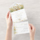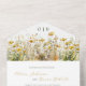Estas únicas y románticas invitaciones para la boda de la cascada de flores silvestres "con presupuesto reducido" están diseñadas con una postal perforada RSVP fácil de desgarrar. Simplemente dobla cada tarjeta en la forma delineada y luego sella y envía - no se necesita ningún sobre para el envío.