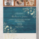 Celebre su boda de otoño en estilo rústico-boho con esta invitación todo en uno en tonos azul verdoso y terracota. Con un fondo rico de madera de granero, acentos de encaje floral dorado y una solapa cálida de terracota, este diseño combina el encanto del bosque con una elegante sofisticación. La invitación incluye un collage de fotos en la parte superior, espacio para detalles de RSVP y sitio web, y un toque romántico con delicadas ilustraciones florales. Perfecta para bodas rústicas-chic, bohemias o al aire libre, este formato ecológico hace que el envío sea sin esfuerzo, sin necesidad de sobre.