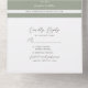 Elegante y ecológico, esta invitación de boda todo en uno presenta un fondo suave verde salvia, pájaros del amor dorados románticos y fuentes minimalistas. Incluye una tarjeta postal de RSVP desmontable en la parte posterior, con espacio para preferencias de comida. Una elección perfecta para bodas de inspiración natural, otoño o boho.