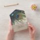 Estas encantadoras invitaciones para la boda turquesa de pavo real de la Marina Rustica de Madera de Vintage, amigable con el presupuesto, han sido diseñadas con una postal perforada RSVP fácil de desgarrar. Simplemente dobla cada tarjeta en la forma delineada y luego sella y envía - no se necesita ningún sobre para el envío.