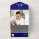 Haga que su boda sea inolvidable con nuestra elegante invitación de boda todo en uno de plata y azul real. Este diseño chic cuenta con un fondo plateado brillante con un corazón de cuerda romántico y espacio para su foto personalizada, creando un recuerdo impresionante. Personalice fácilmente con los detalles de su boda, sitio web e información de RSVP, lo que la hace perfecta para parejas modernas. Ideal para bodas glamurosas, elegantes o románticas, esta invitación combina estilo y comodidad en un hermoso diseño.