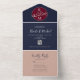 Invitación Todo En Uno Boda de Rosa Borgoña y Azul Marino