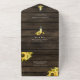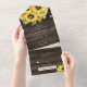 Rustic Barn Wood Sunflowers String ilumina a Boda todo en una sola invitación con RSVP desgarrada