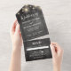 Invitación Todo En Uno Boda de Rustic Black Wood String Lights