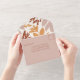 Inspirarse en este diseño moderno y llamativo. Presenta elementos botánicos abstractos en terracota, colores suaves rosa y mostaza. Esta invitación es una excelente manera de enviar todos sus detalles en un formato fácil de usar. Todo lo que necesitas hacer es cambiar el texto a tus necesidades personales, luego el invitado puede desasociar la información de rsvp y enviarla de vuelta. Tan fácil y conveniente.