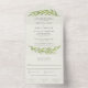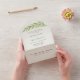 Esta cómoda y económica invitación plegada, todo en un solo formato de invitación a la boda, presenta un motivo de ramas verdes que arman suavemente y que enmarcan una elegante tipografía. Puede personalizar aún más esta invitación cambiando el color de fondo del marfil suave al color de su elección e incluso cambiando los tipos de letra para que su aspecto sea realmente personalizado.