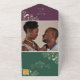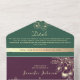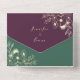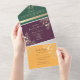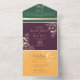 Celebre su amor en un estilo rico y lujoso con esta invitación de boda todo en uno de tonos de joya. Con paneles de ciruela intenso y verde esmeralda, ilustraciones florales doradas y una sección de RSVP desmontable en amarillo marigold, este diseño es perfecto para bodas audaces y elegantes. El diseño continúa la paleta de tonos de joya y la ilustración floral, añadiendo sofisticación y estilo a cada detalle.