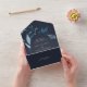 Nuestra invitación a la boda de Winter Azure rodea los detalles del día de la boda con un arco de color acuático vibrante. Una elección moderna pero orgánica para bodas de invierno o primavera con elementos botánicos intrincados. Carretera: Winter Azure, una mezcla de azul congelado sobre un fondo azul marino.