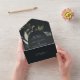 Nuestra invitación a la boda Winter Meadow rodea los detalles de tu día de boda con un arco de vibrante color de agua. Una elección moderna pero orgánica para bodas de invierno o primavera con elementos botánicos intrincados. Cara de colores: Winter Meadow, una mezcla oscura y morena de sabio verde polvoriento mudo, helecho y follaje verde oliva sobre un suave fondo negro.