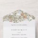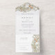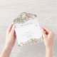 Acepte la elegancia del pasado con esta invitación de boda todo en uno, con el icónico patrón de 'Lirio Dorado' de William Morris. El diseño es una sinfonía de tonos pastel, con una paleta que incluye el verde oliva, el marfil y el oro suave, realzados por toques de coral y azul cielo. Esta invitación está pensadamente elaborada con una conveniente sección de RSVP desgarradora, que combina la belleza del diseño histórico con la práctica moderna. La textura lujosa del papel complementa el intrincado patrón floral, haciendo de esta invitación un placer para los clientes.