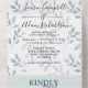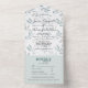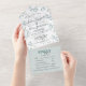 El elegante diseño acuático presenta un estilo rústico de eucalipto verde salado. Esta moderna y única invitación "todo en uno" es tan sencilla para el personalizar. Todos los elementos de este diseño se pueden reorganizar para su ocasión especial.