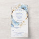 Invitación Todo En Uno Boda Dusty Blue Floral Gold