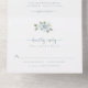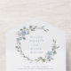 Elegante Boda todo en una sola invitación. Elegante y romántico, la suite Boda Dusty Blue Floral cuenta con magníficas acuarelas pintadas a mano color azul polvoriento, rosas crema y hojas de salvia verde dispuestas como una corona elegante. Encontrar elementos coincidentes en la suite Boda Dusty Blue Wreath.