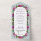 Invitación Todo En Uno Boda elegante de flores moradas rosadas de primave