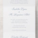 Plantilla única de invitación de boda All In One con tarjeta rsvp para una opción conveniente y de bajo costo para parejas con experiencia en presupuesto. El sencillo diseño presenta una invitación tradicional a la boda, incluyendo los nombres de los padres anfitriones junto con el nombre de la novia y el novio en una elegante caligrafía. Todo el texto está en azul polvoriento sobre un fondo blanco y puede cambiarse a cualquier color que desee haciendo clic en el botón "personalizar". Esta suite nupcial de estilo clásico es perfecta para un boda formal.